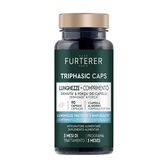 TRIPHASIC CAPS Comprimento, suplemento alimentar, especialmente concebido para cabelo comprido. A sua fórmula enriquecida com vitaminas proporciona densidade* e reforça a beleza de um cabelo comprido. Os comprimentos são reforçados* e protegidos graças à vitamina E, que ajuda na proteção celular contra o stress oxidativo. Sem colorantes artificiais.